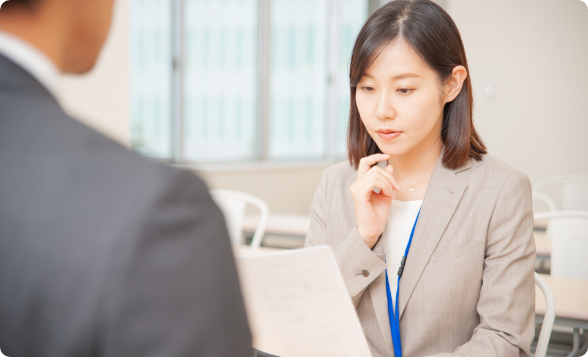 アドバイザーが過去のご経歴と転職の理由などをお伺いし、転職活動のプランを一緒に検討します。